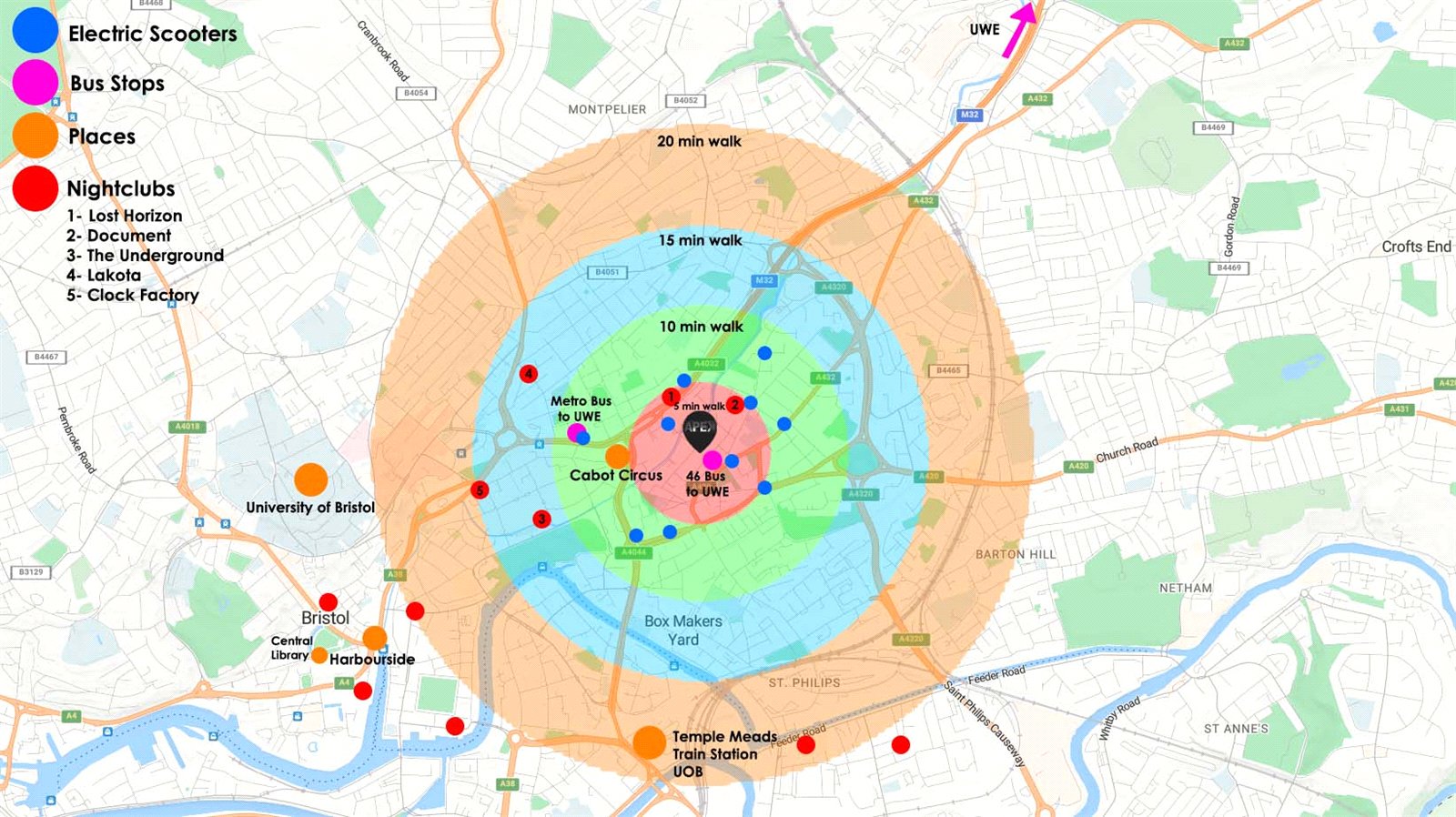 - 0.8 miles – Temple Quarter Enterprise Campus & Temple Meads Station (UoB)