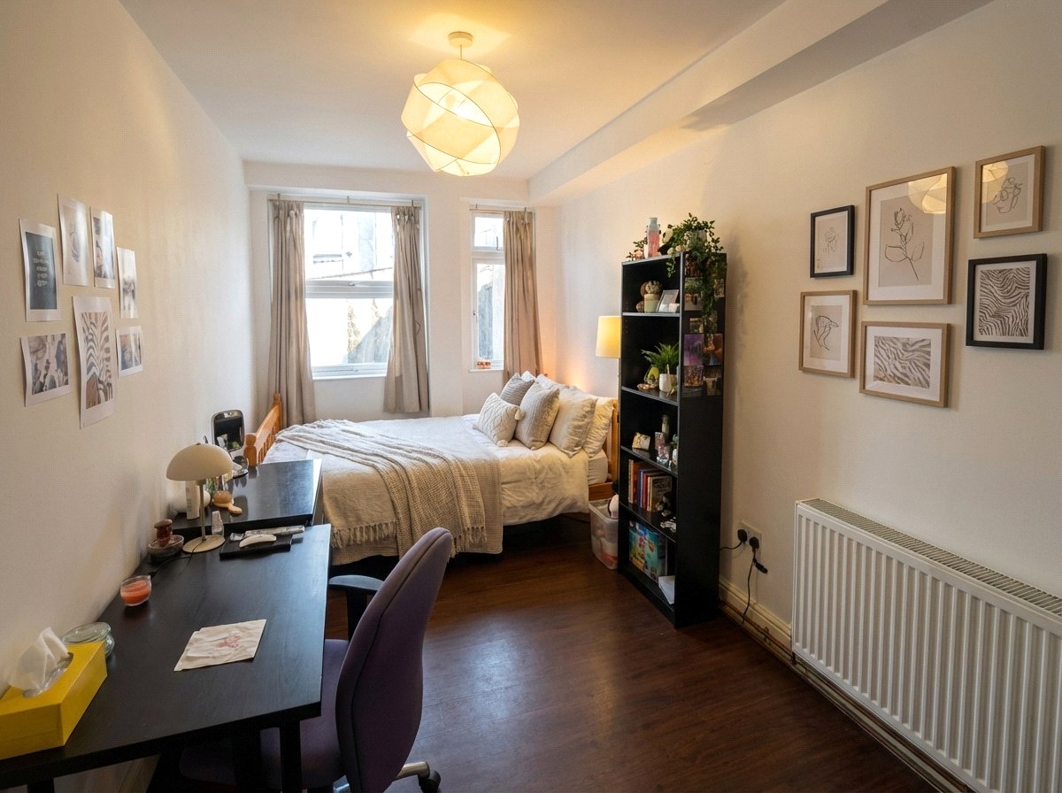Inside, the flat features 2 MODERN wet rooms and a GENEROUSLY sized kitchen/living room equipped with essential appliances, including a WASHING MACHINE and DISHWASHER — ideal for easy shared living. Each of the 5 bedrooms provides plenty of space to study and relax, making it a great fit for groups who want comfort and practicality in a prime location.